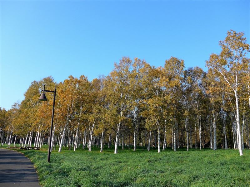 ロケーションフォトに人気のシラカバが立ち並ぶエリアは、北海道らしい風景のひとつです。