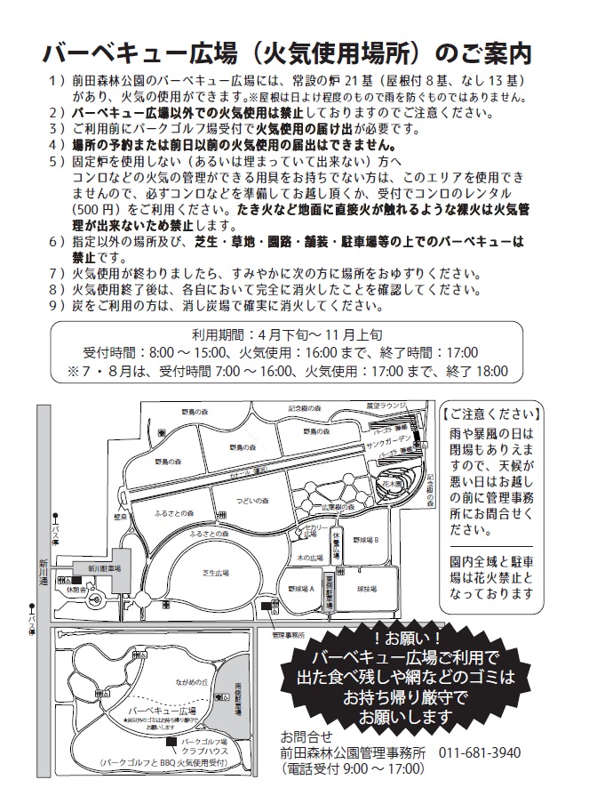 - 受付時間:7時から16時(クラブハウスへ「火気使用届け」の受付)