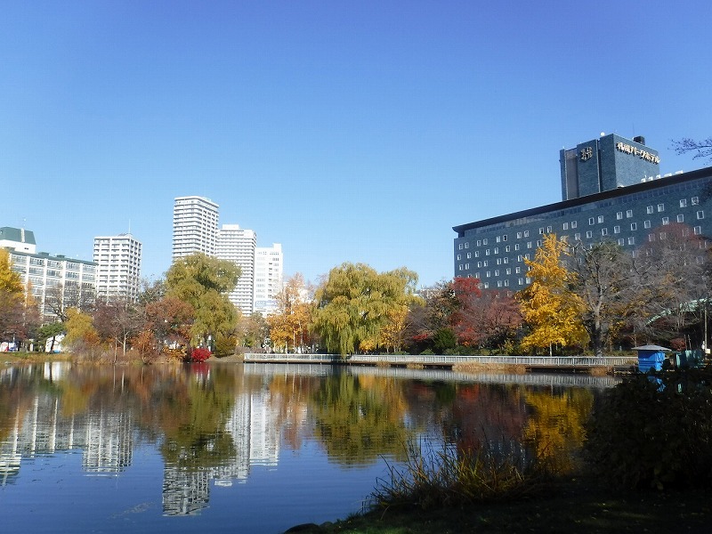 藻岩山を背景に、 水と緑が豊かな憩いの場として親しまれている公園です。