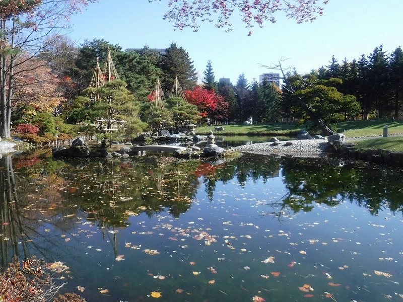 藻岩山を背景に、 水と緑が豊かな憩いの場として親しまれている公園です。