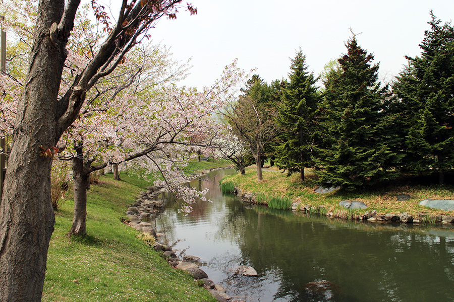 藻岩山を背景に、 水と緑が豊かな憩いの場として親しまれている公園です。