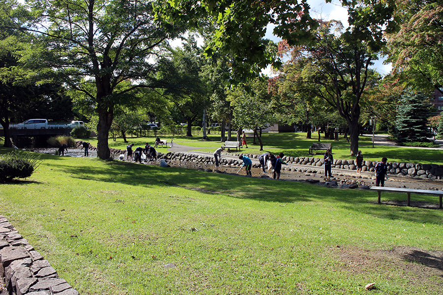 藻岩山を背景に、 水と緑が豊かな憩いの場として親しまれている公園です。