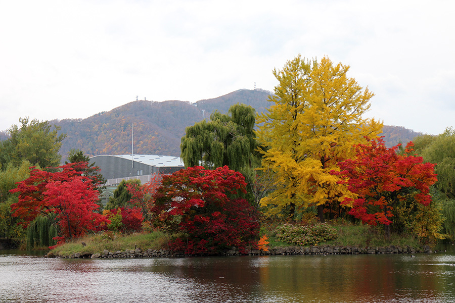 藻岩山を背景に、 水と緑が豊かな憩いの場として親しまれている公園です。