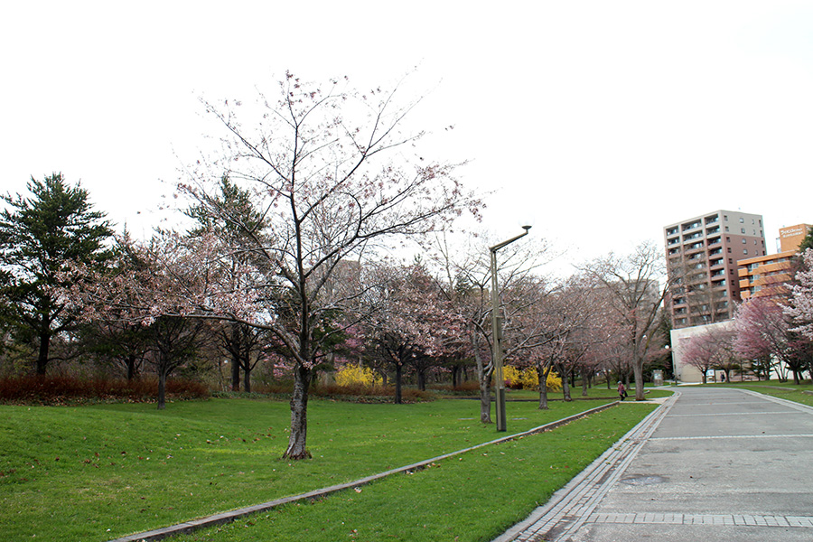 藻岩山を背景に、 水と緑が豊かな憩いの場として親しまれている公園です。