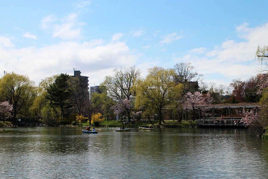 藻岩山を背景に、 水と緑が豊かな憩いの場として親しまれている公園です。