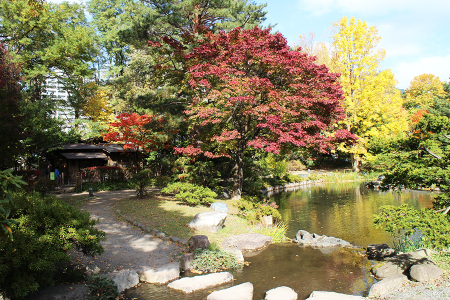 藻岩山を背景に、 水と緑が豊かな憩いの場として親しまれている公園です。