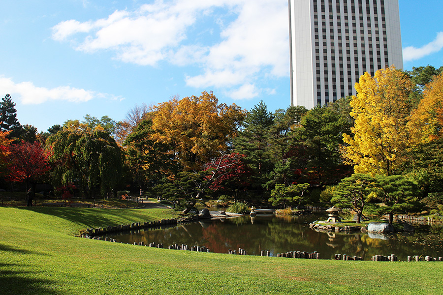 藻岩山を背景に、 水と緑が豊かな憩いの場として親しまれている公園です。