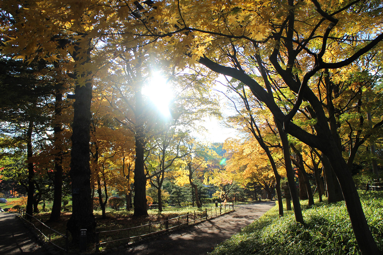 藻岩山を背景に、 水と緑が豊かな憩いの場として親しまれている公園です。