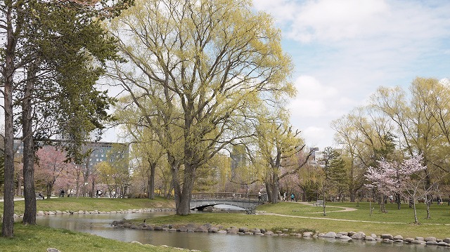 藻岩山を背景に、 水と緑が豊かな憩いの場として親しまれている公園です。