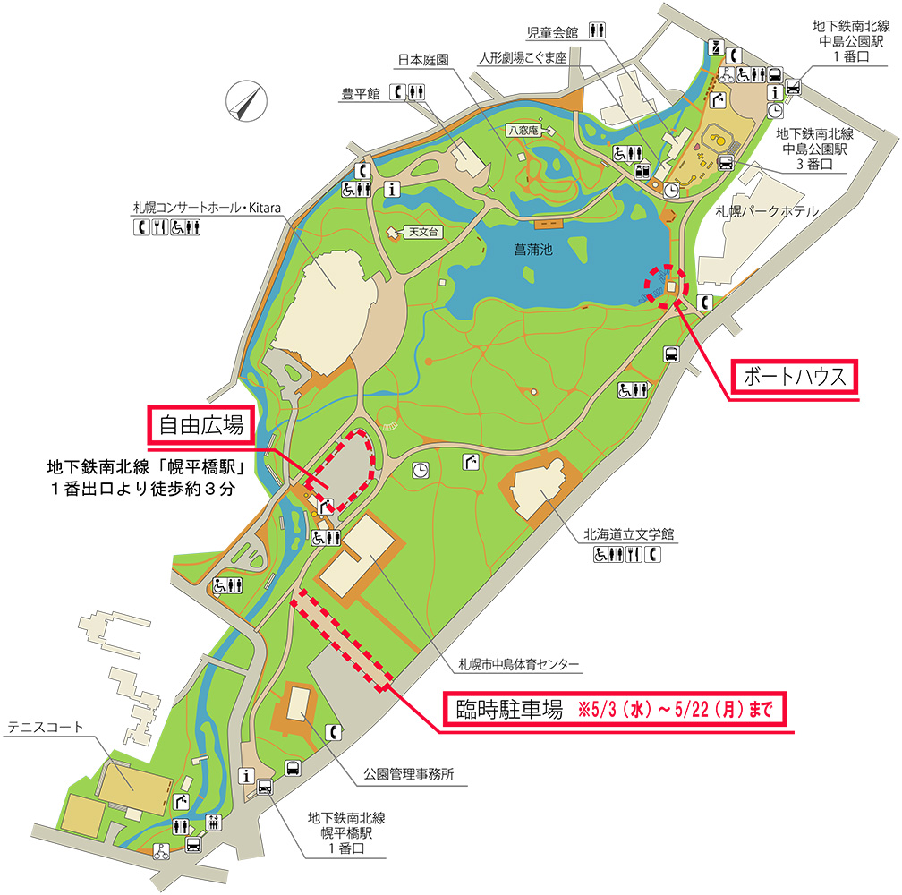 藻岩山を背景に、 水と緑が豊かな憩いの場として親しまれている公園です。
