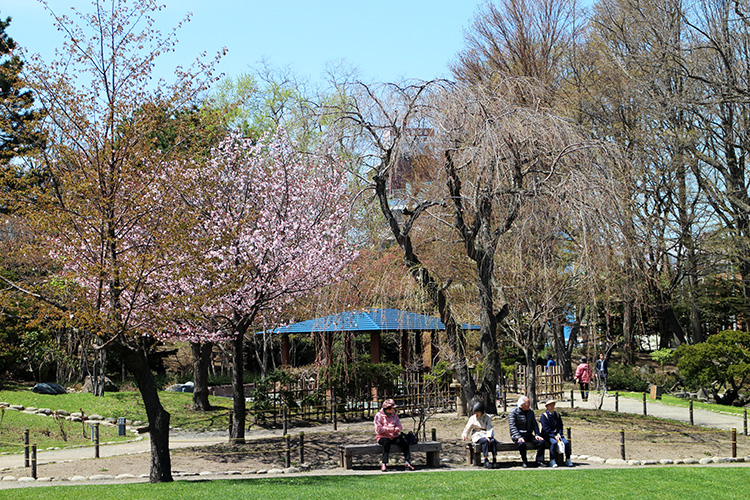 藻岩山を背景に、 水と緑が豊かな憩いの場として親しまれている公園です。