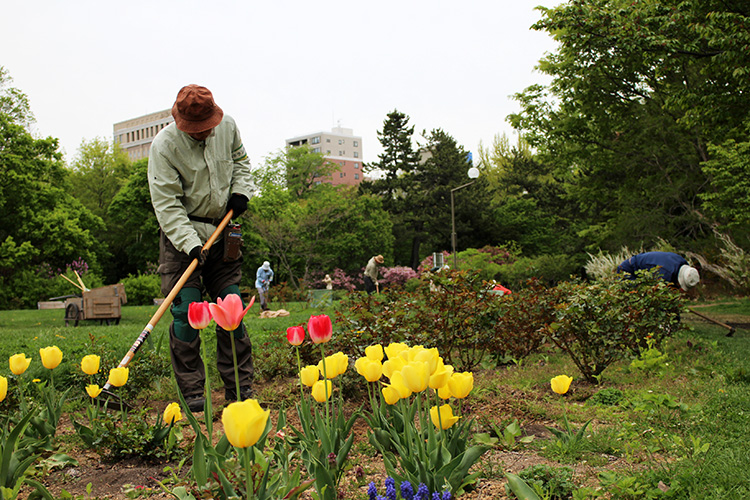 藻岩山を背景に、 水と緑が豊かな憩いの場として親しまれている公園です。