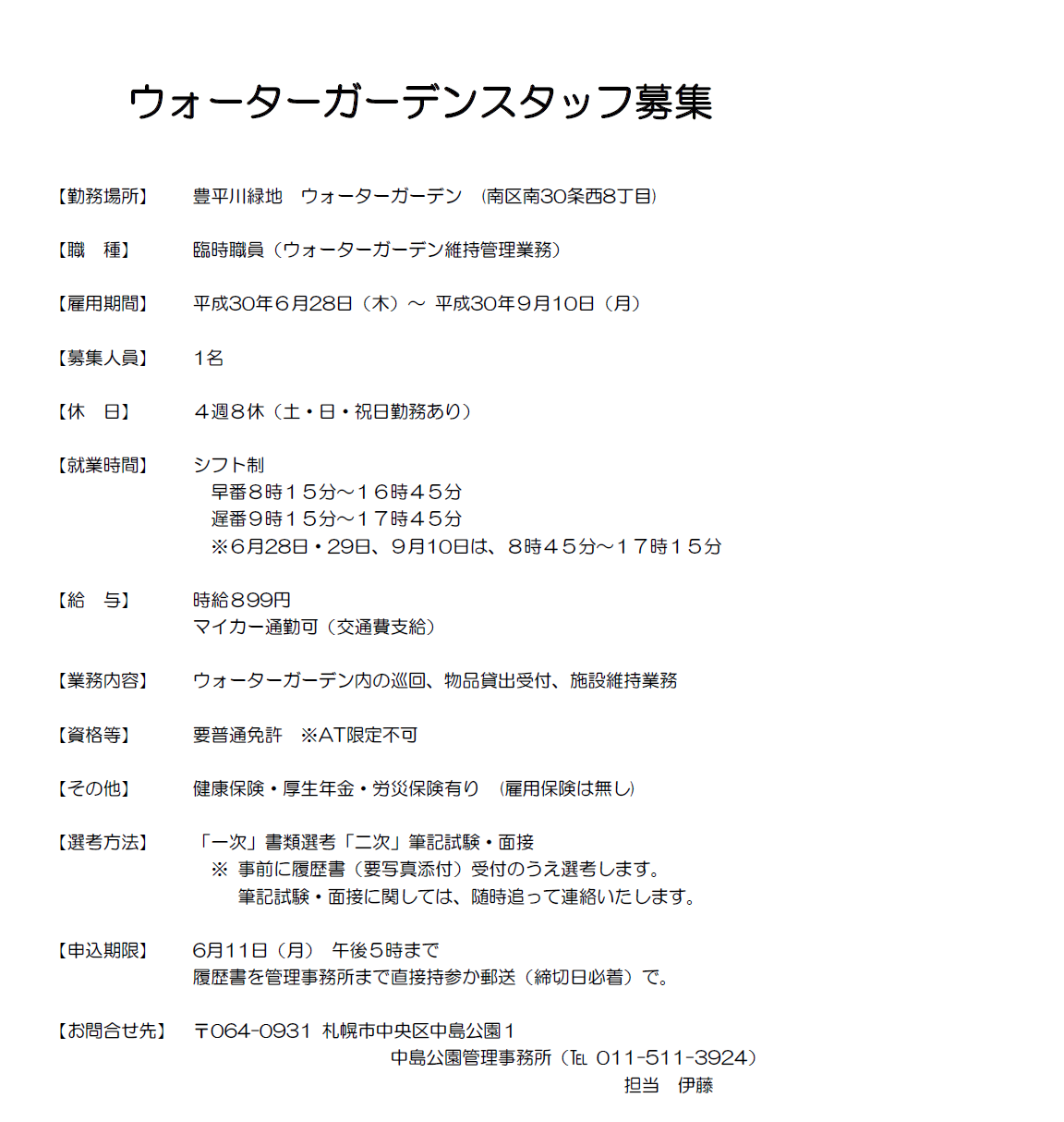 2018年6月4日 1152 × 1214 平成30年度 ウォーターガーデンスタッフ募集!
