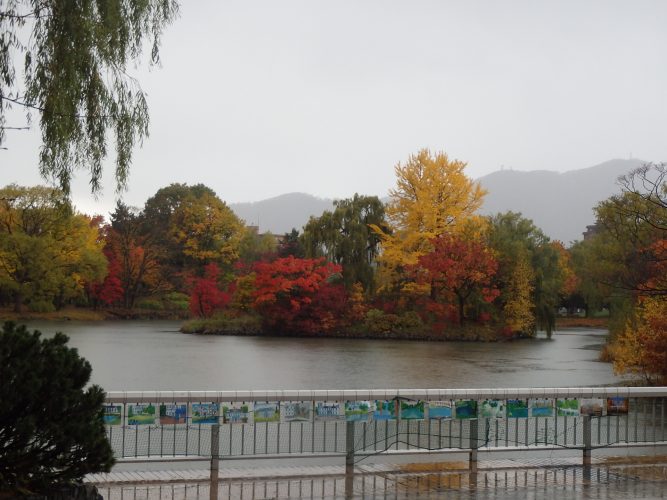 藻岩山を背景に、 水と緑が豊かな憩いの場として親しまれている公園です。