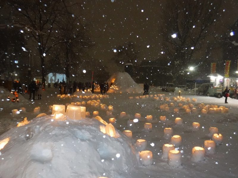 DSCF2692 2020年2月11日 800 × 600 『第14ゆきあかりin中島公園』開催しました 最終日は降雪により一時点灯に苦戦する場面もありましたが、3日間とも比較的穏やかで恵まれた天候の中、キャンドルを灯すことができました。