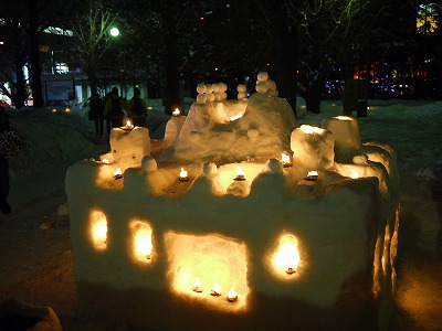 分かりやすい言い方をすると、雪まつりの市民雪像の「ゆきあかり」バージョンと考えていただければ良いと思います。