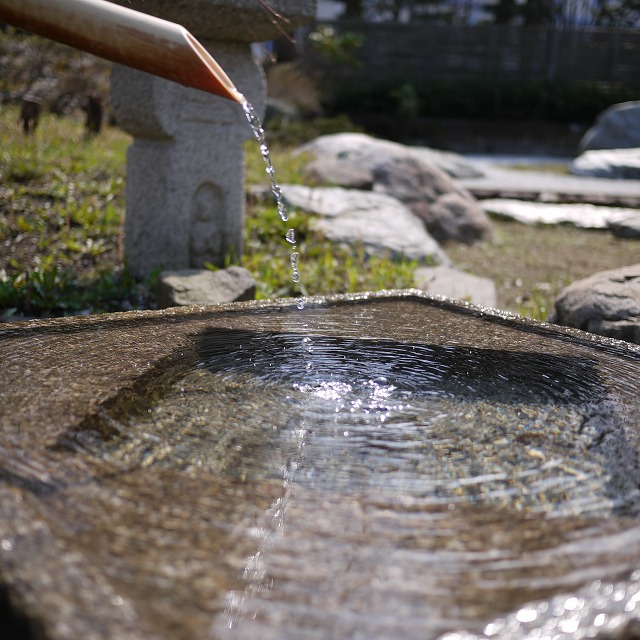 筧から手水鉢に水が流れる際に、「チョロチョロ」と音がします。