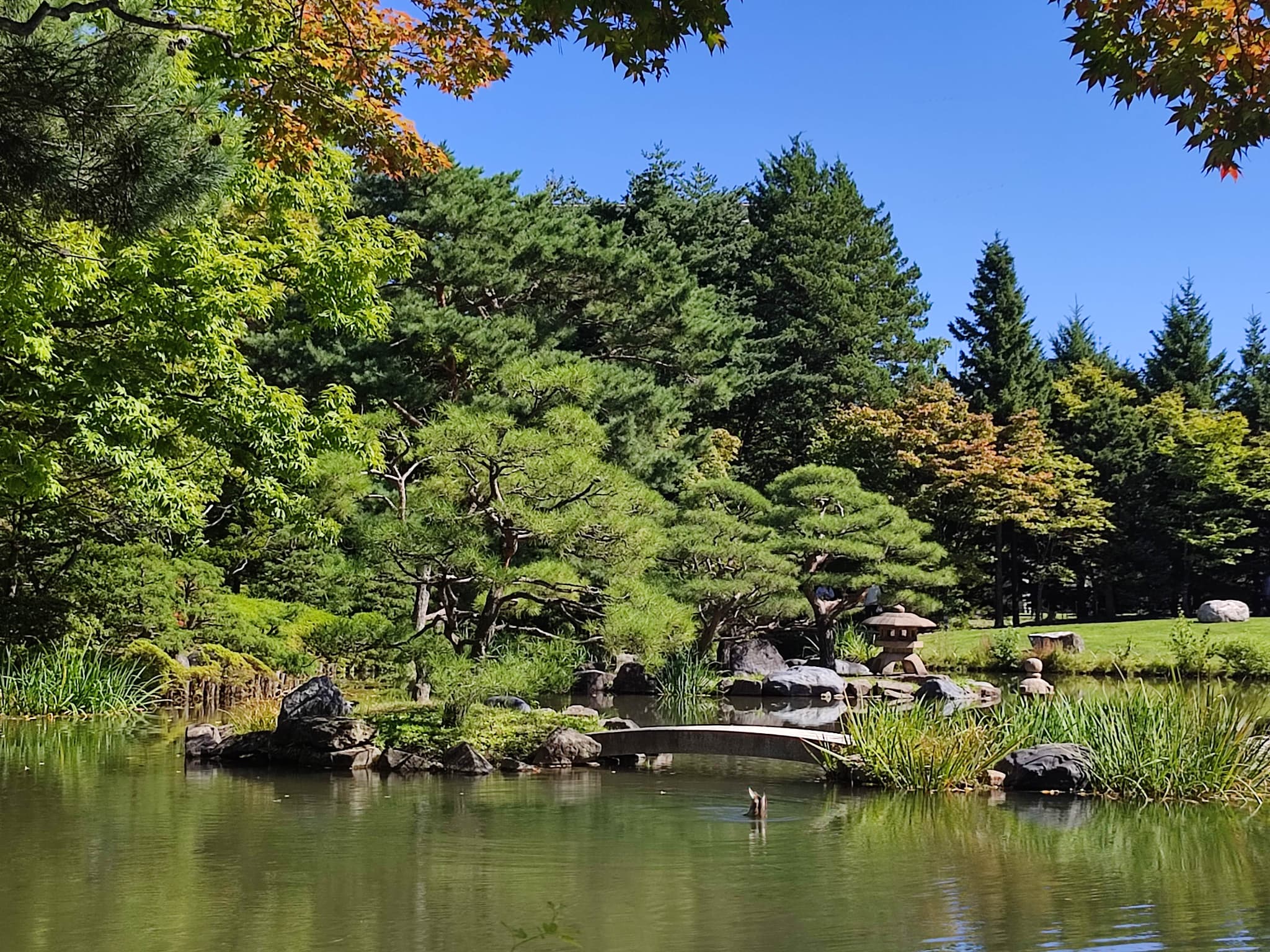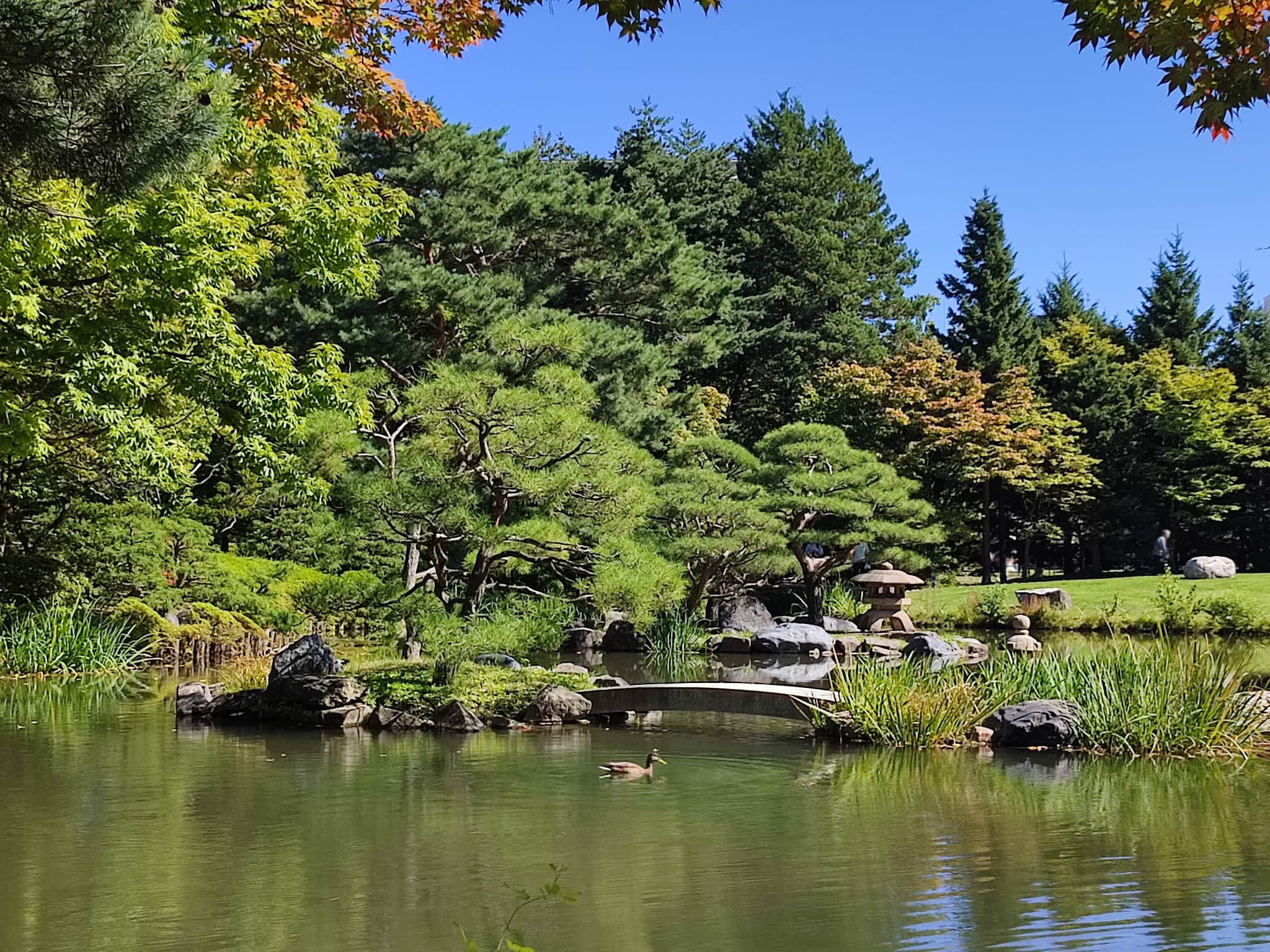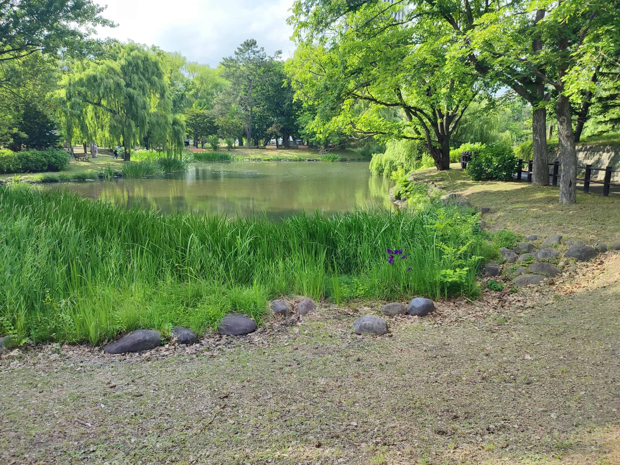 藻岩山を背景に、 水と緑が豊かな憩いの場として親しまれている公園です。