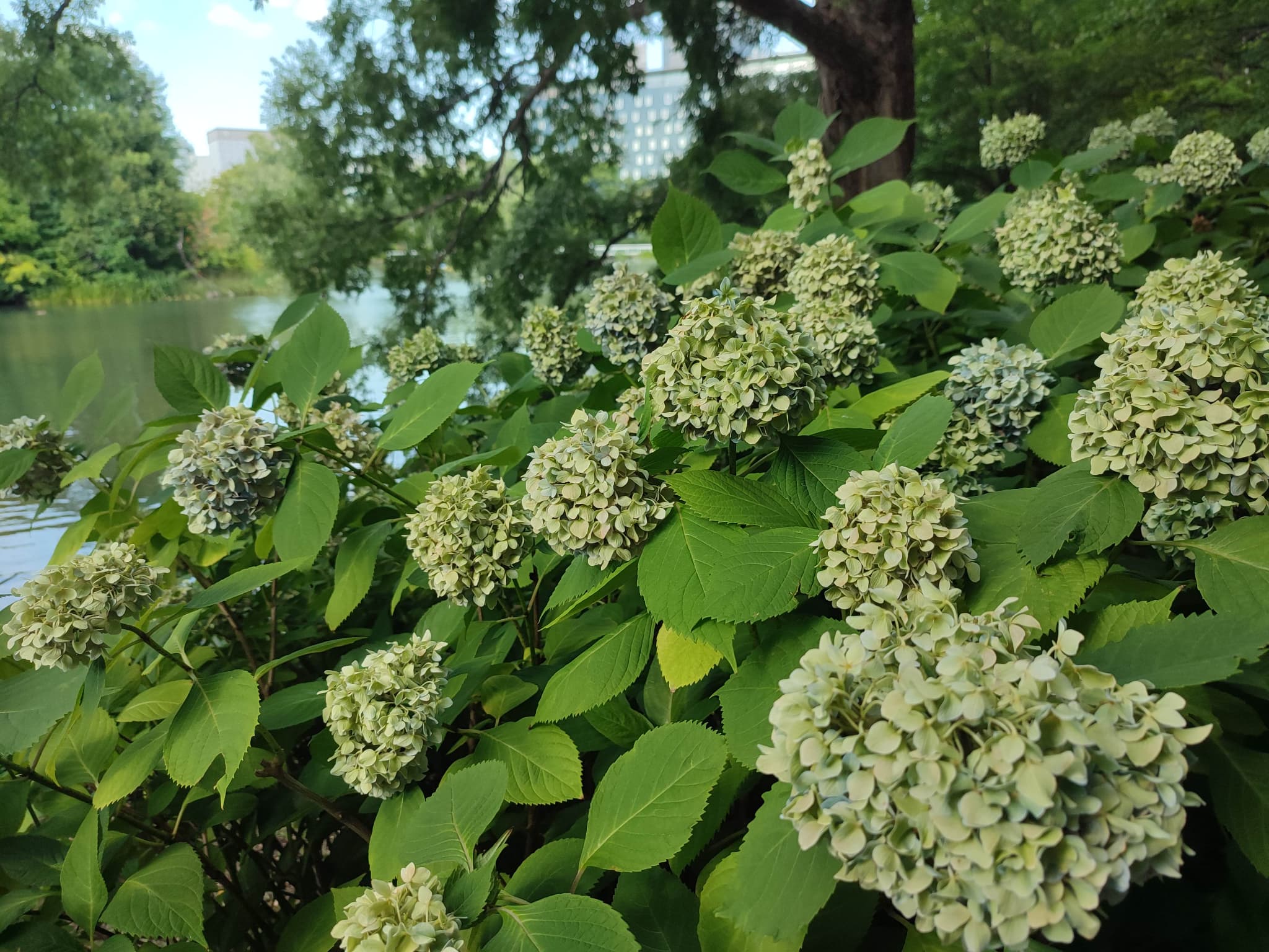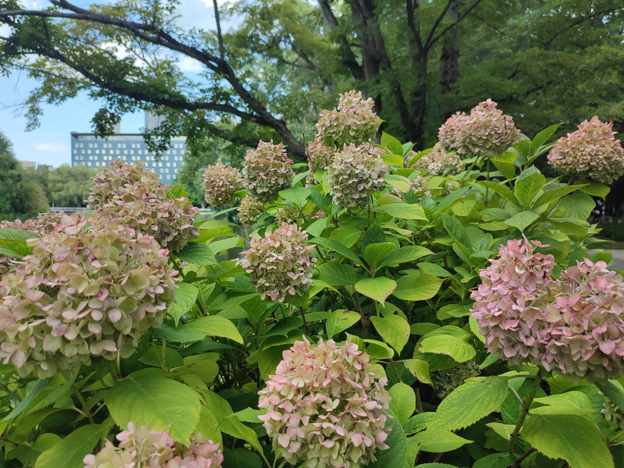 アジサイさんは秋っぽい色に変化してきてますよ。