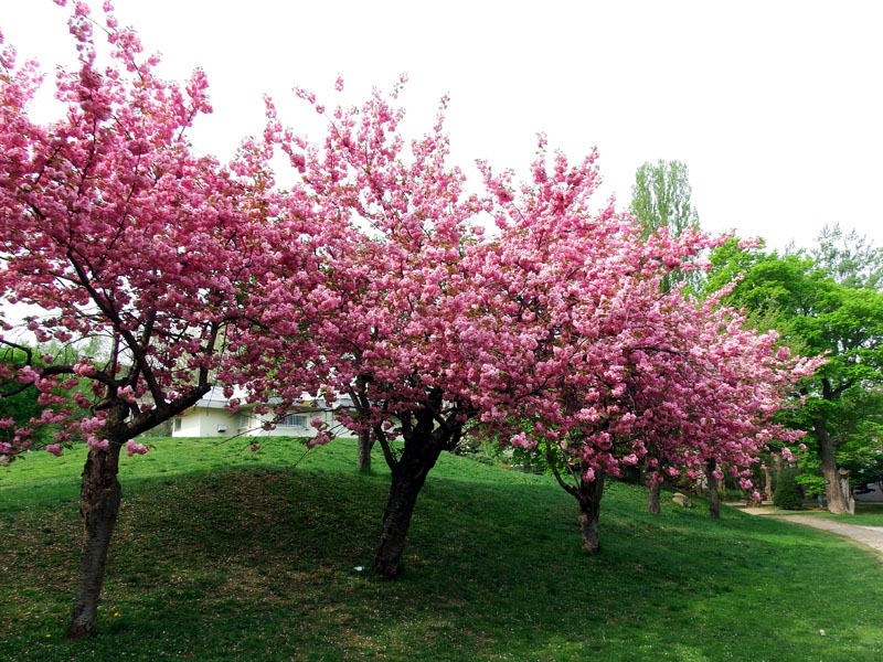 エゾヤマザクラやソメイヨシノほどは本数はないですが、あちこちでヤエザクラが