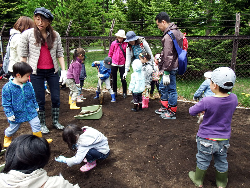 大勢のちびっ子が特設畑を元気いっぱいに整えてくれました♪