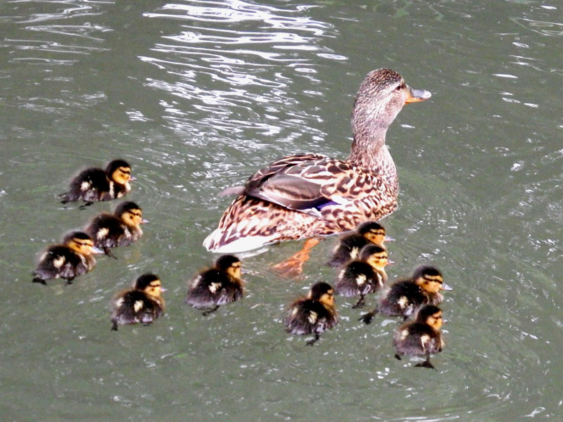 そして、その脇ではこの時期おなじみのマガモの親子が泳ぐ姿がとてもかわいいです♪