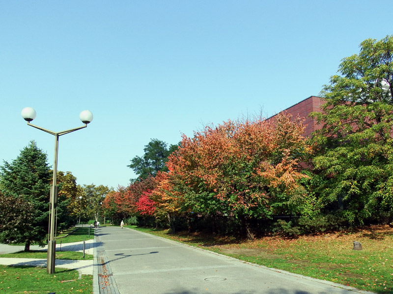 そんな中、公園内の豊平館(改修工事中)前では、「青空画廊」と題して、中島中学校の生徒の皆さんが描いた水彩画作品53点を展示して、晩秋の公園を彩ります。