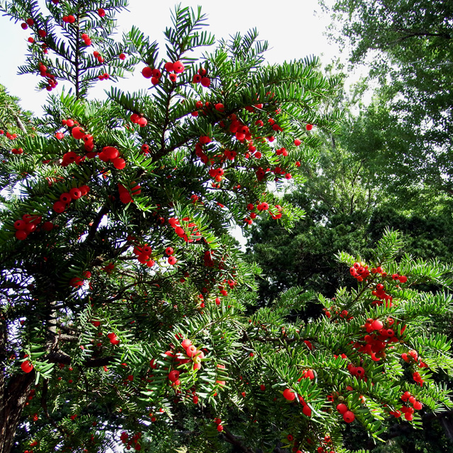 葉だけではなく、イチイの実やナナカマドの真っ赤な実もたくさんついているので