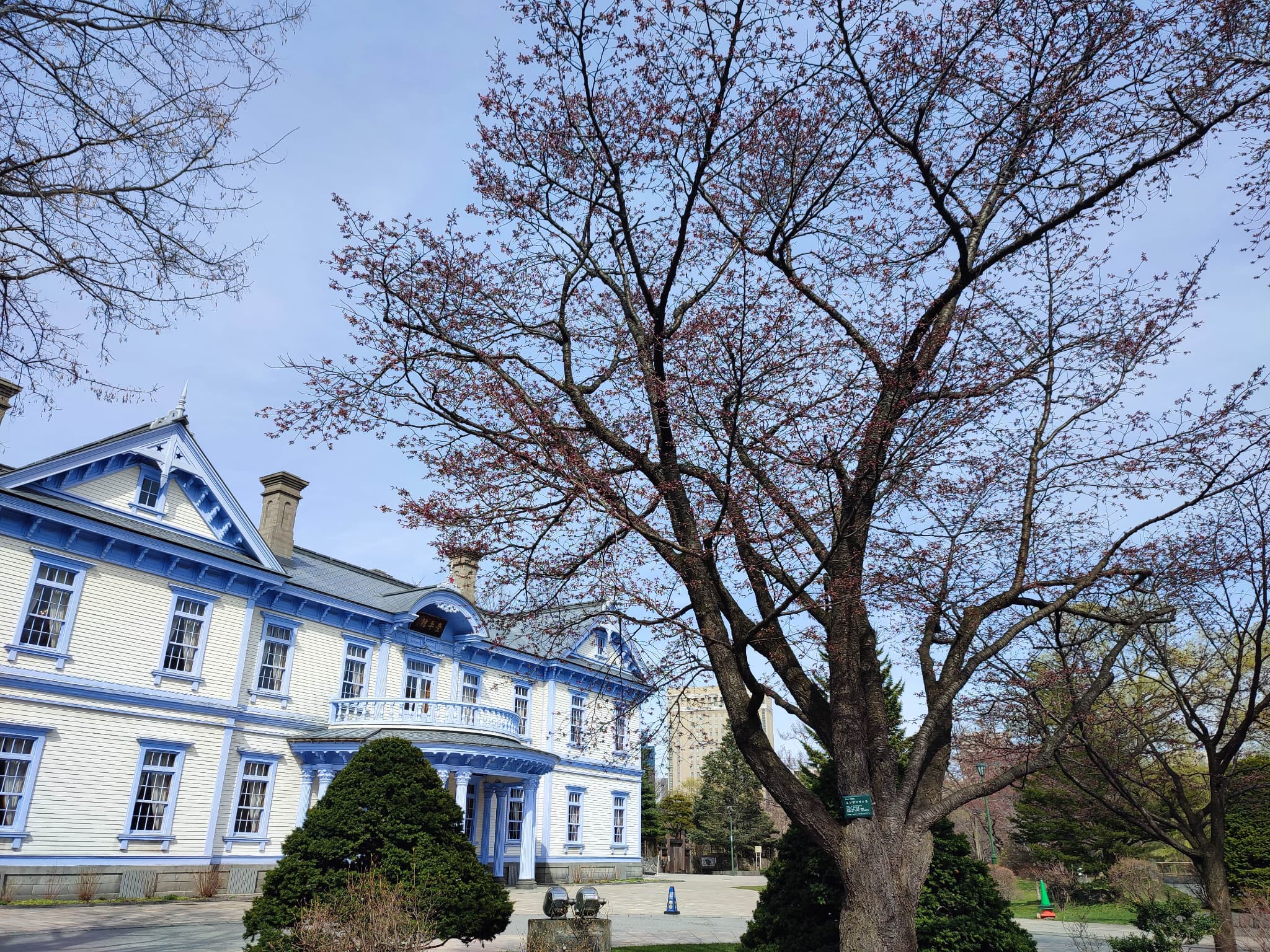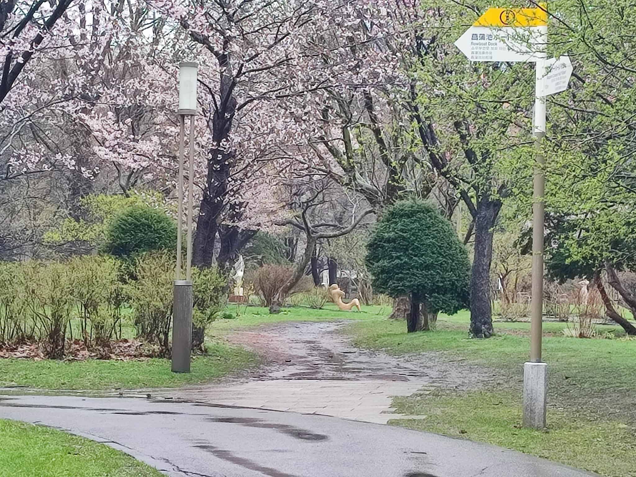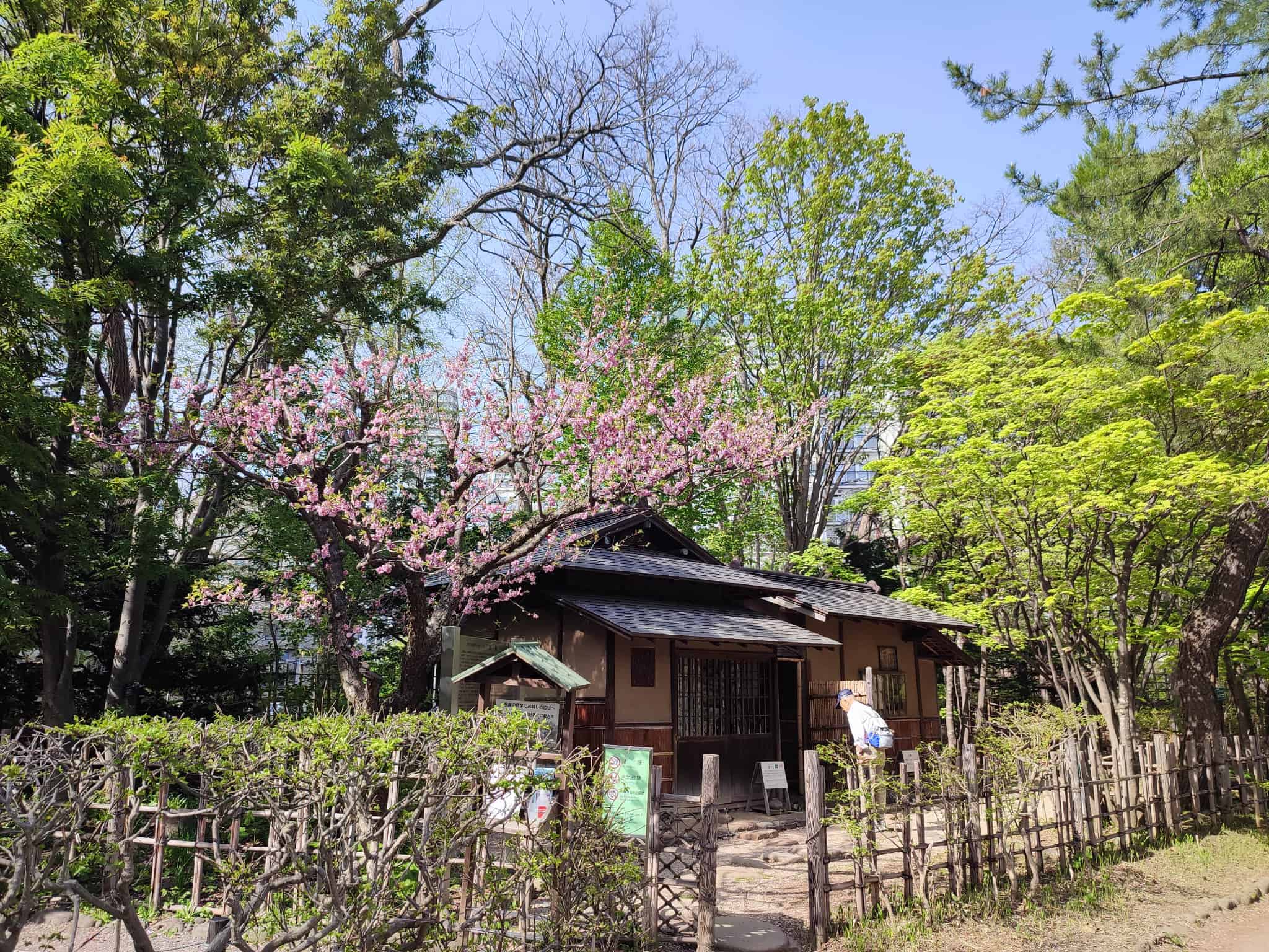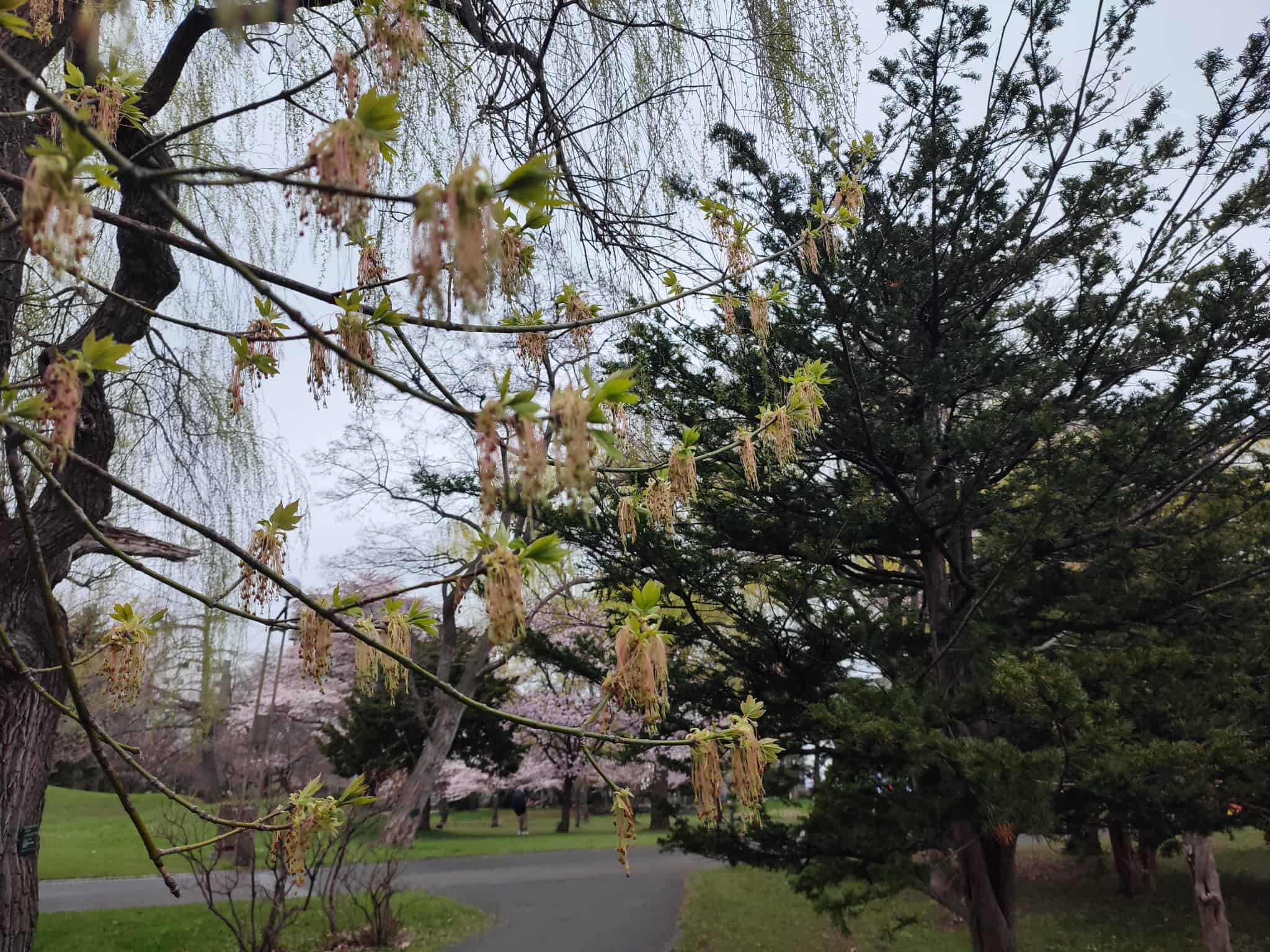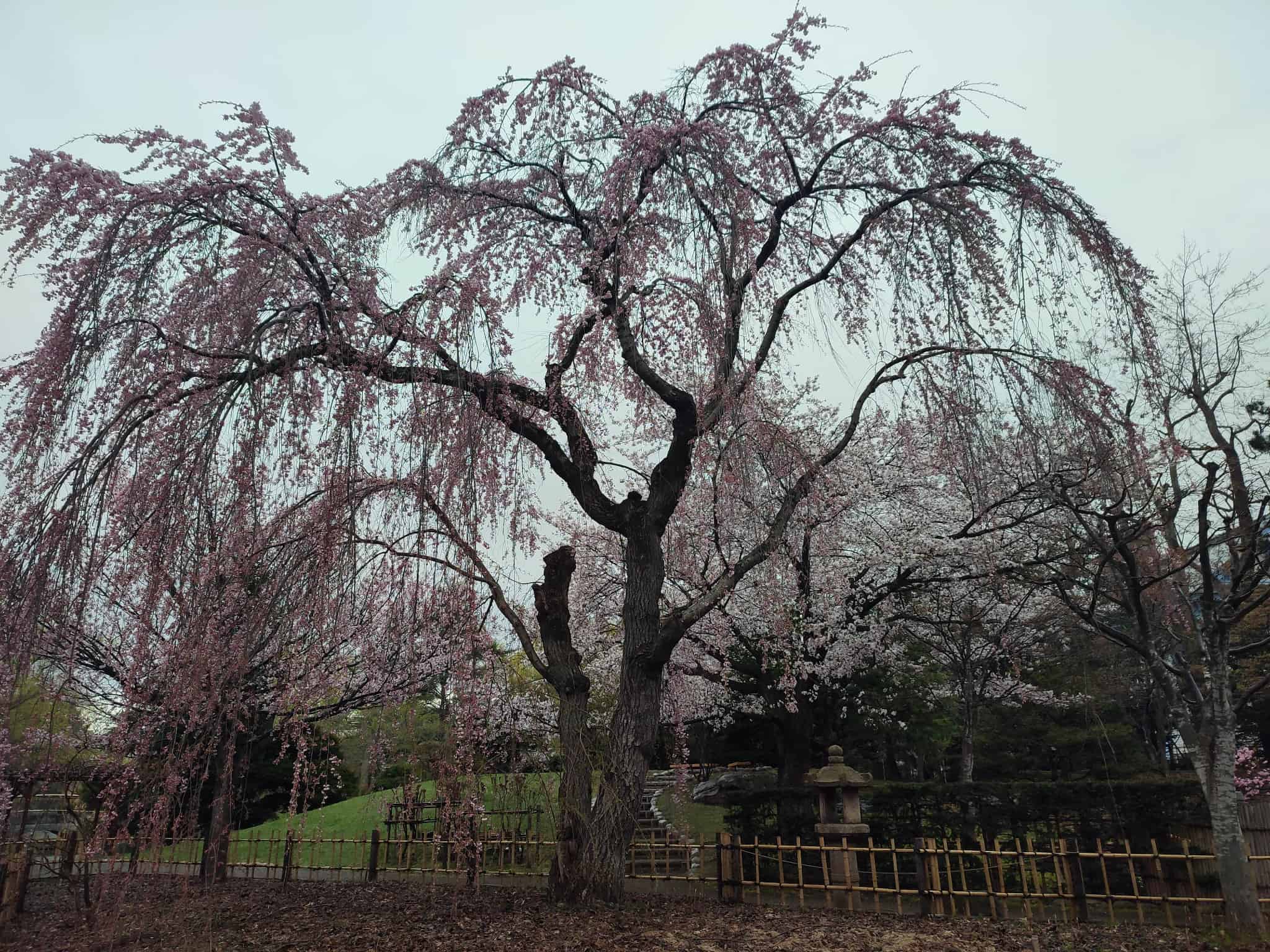 日本庭園横のシダレザクラさんとソメイヨシノさん