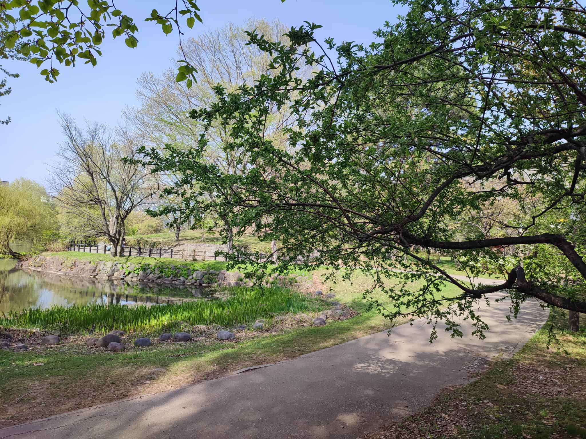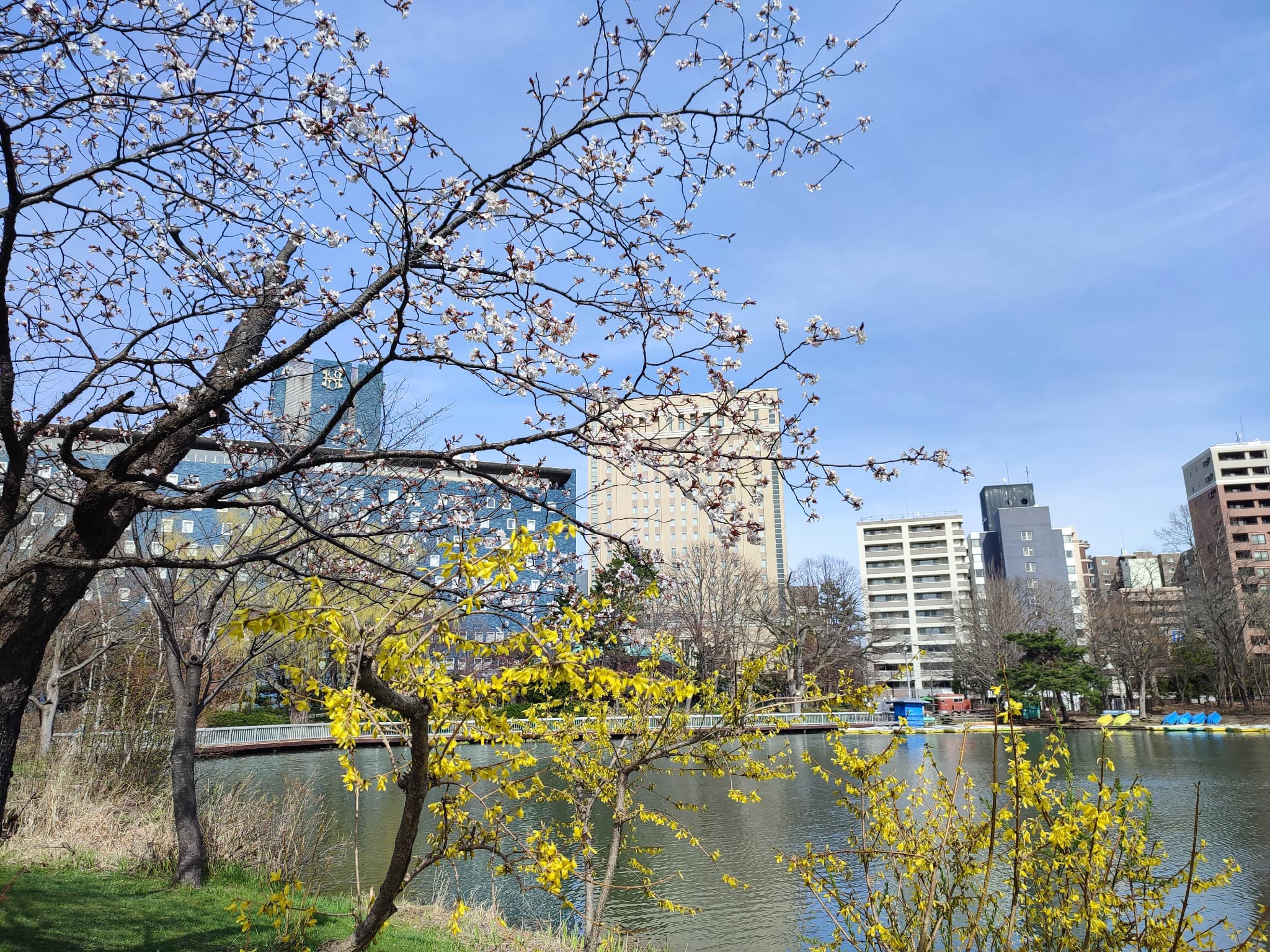 藻岩山を背景に、 水と緑が豊かな憩いの場として親しまれている公園です。