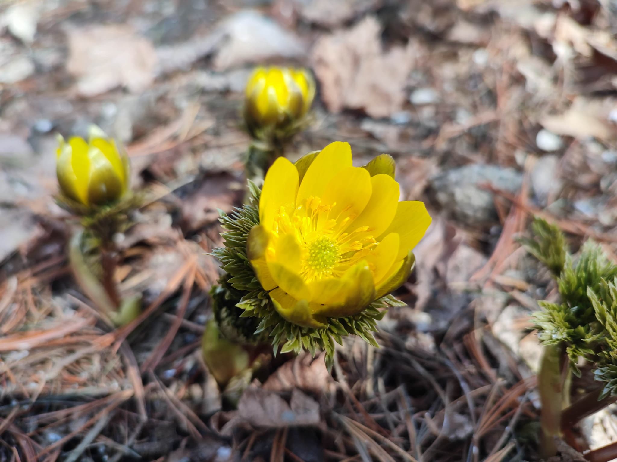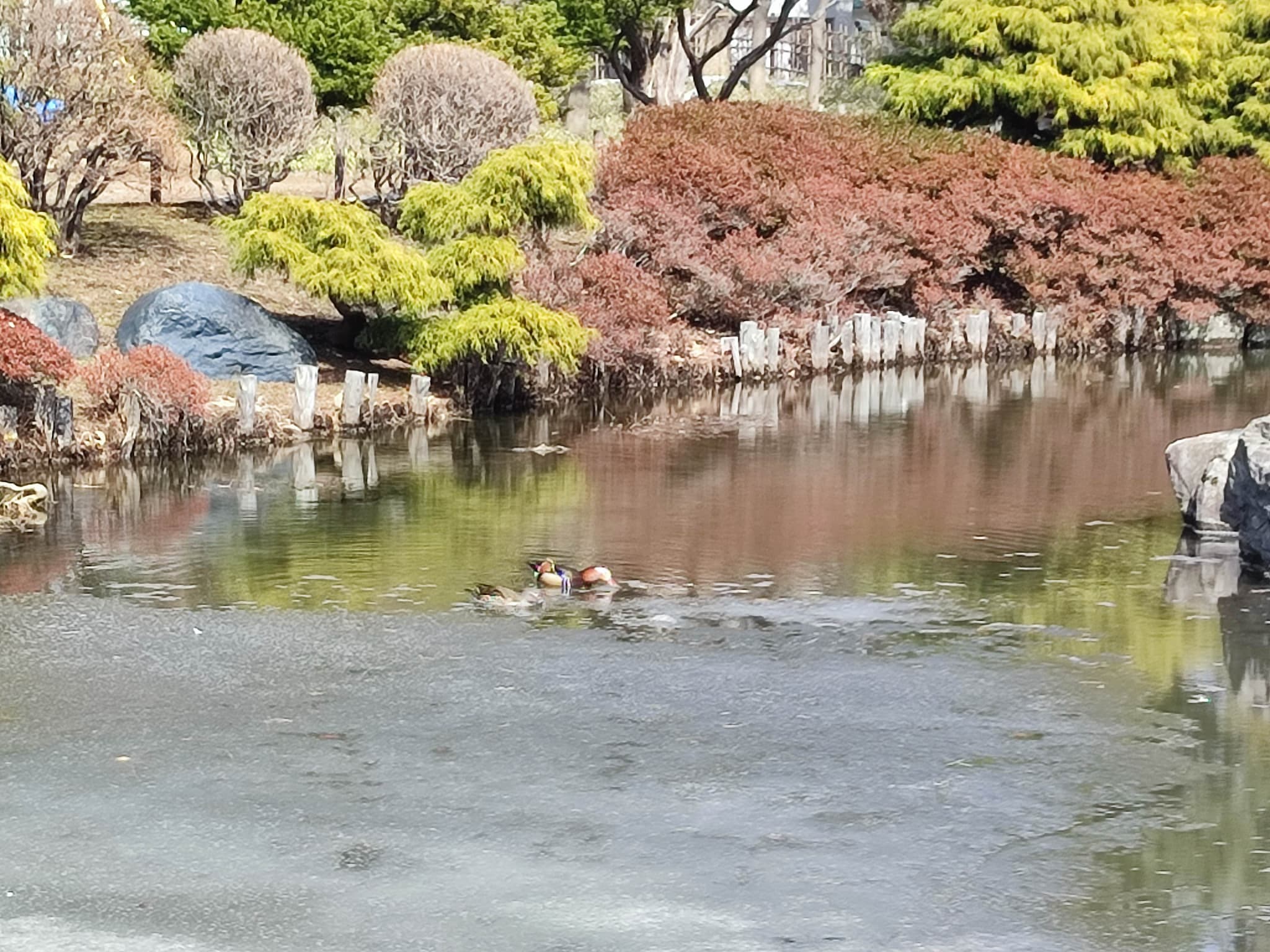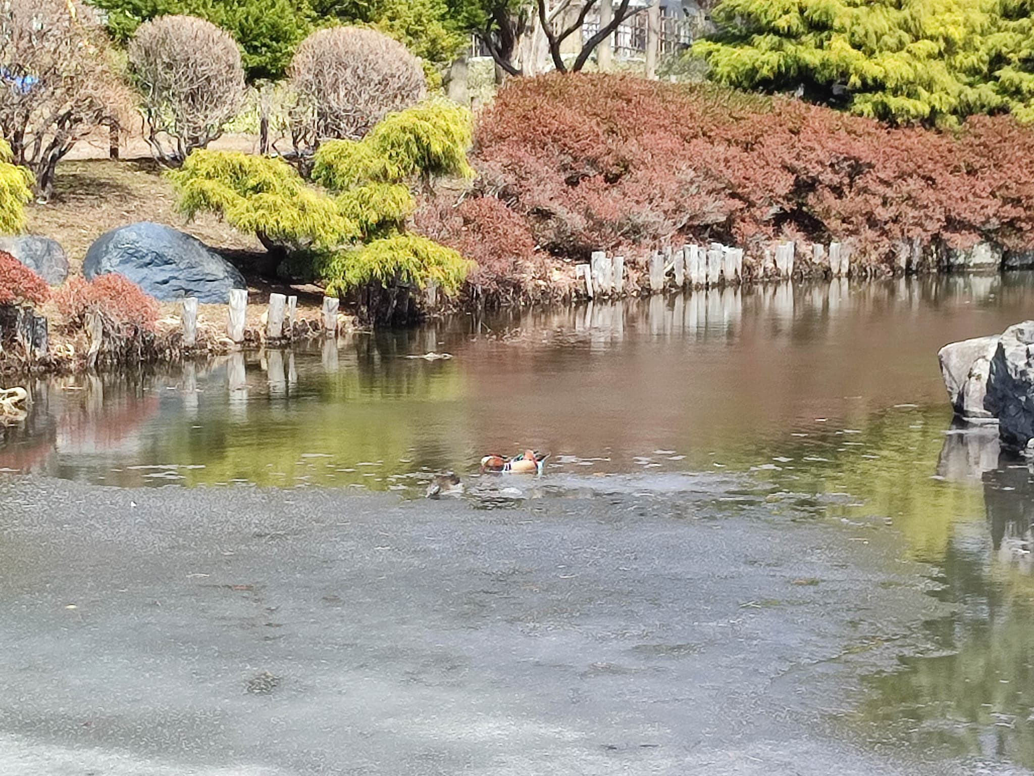 日本庭園ではフクジュソウの他にも今季初登場のメンバーが。