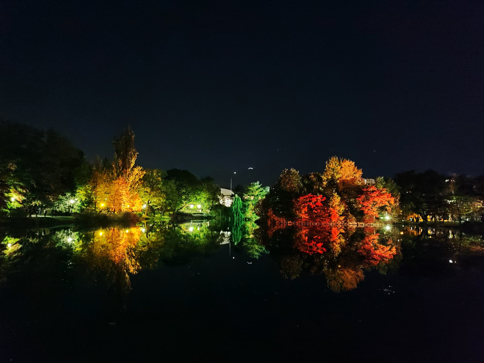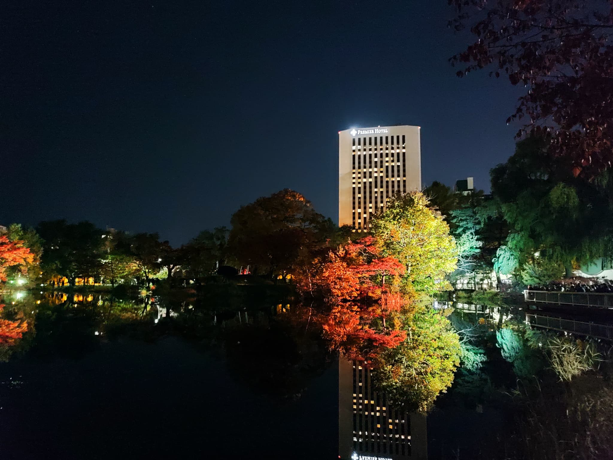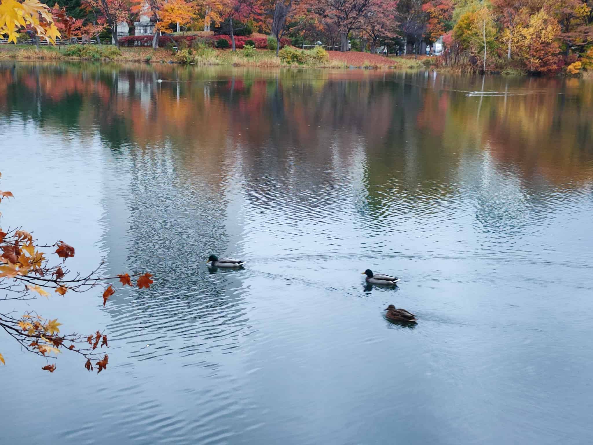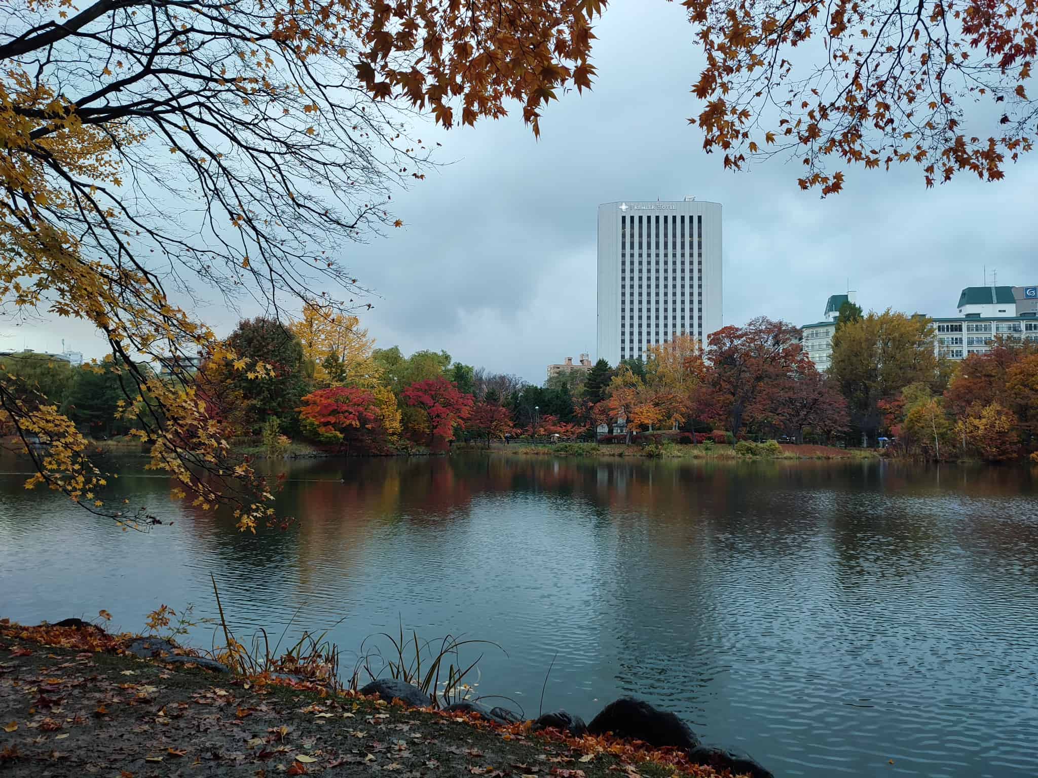 藻岩山を背景に、 水と緑が豊かな憩いの場として親しまれている公園です。