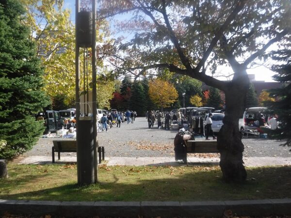 時折、陽が差す中、今日は、自由広場でフリーマーケットが、開催されています。お目当ての品がないか?掘り出し物はないか?思い思いに秋のフリマを、楽しまれていました。
