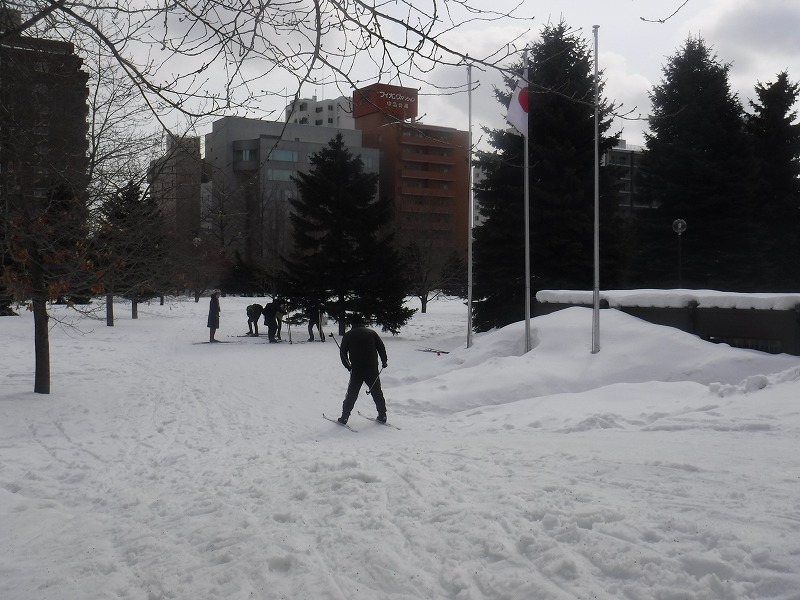 ウィンタースポーツを楽しめるのも、そろそろおしまいに近づいていくのかもしれません。中島公園で楽しめるスノーシュー、歩くスキーも、いよいよ明日、3月6日がレンタル最終日です。中島体育センター前では、雪を名残惜しむかのように、歩くスキーを楽しんでいる人達が多く見受けられました。
