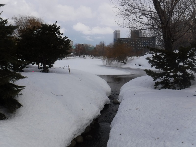 厳冬の間、氷雪に閉ざされていた菖蒲池も水面が見えはじめました。池の氷が全て解ける頃には、又たくさんの鳥が飛来してくるのでしょう。