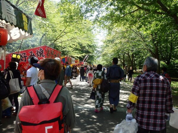 中島公園駅から幌平橋駅までの園路に露店が並んでいますが、北から南への一方通行にご協力をお願いします。
