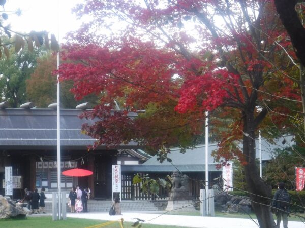中島公園に隣設する護国神社では、秋の風物詩の大切なイベント「七五三」のお参りをしているのを、お見かけしました。お嬢さんの可愛い着物姿に、親御さんも笑顔がこぼれますね。