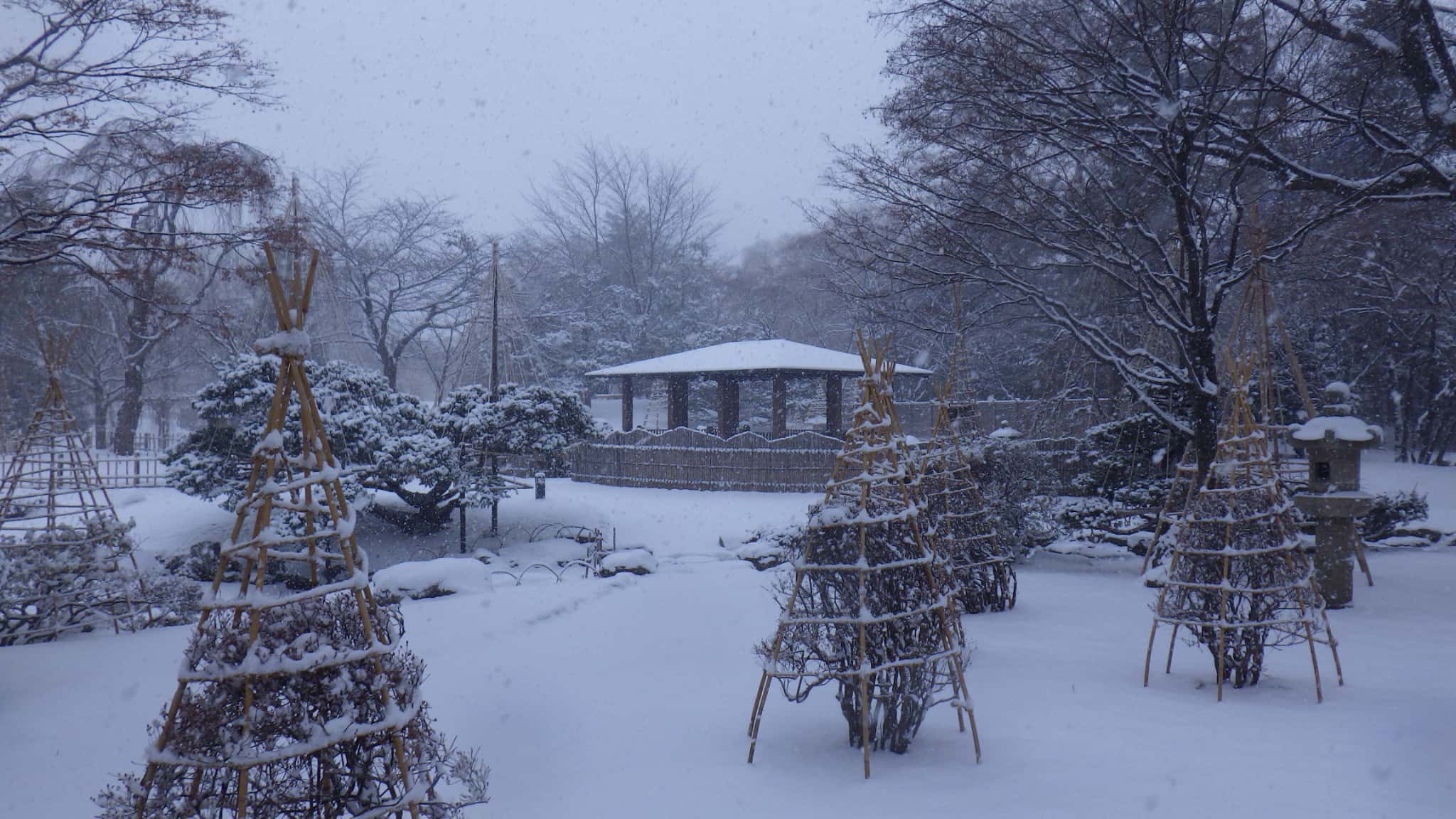 公園ニュース, 自然情報 雪の日本庭園 2024年12月9日 nakajima 雪が積もり始めた日本庭園をどうぞ。 日本庭園1 日本庭園2 日本庭園3 日本庭園4 八窓庵冬ごもり中 ちなみに日本庭園、冬の間はお休み中です。