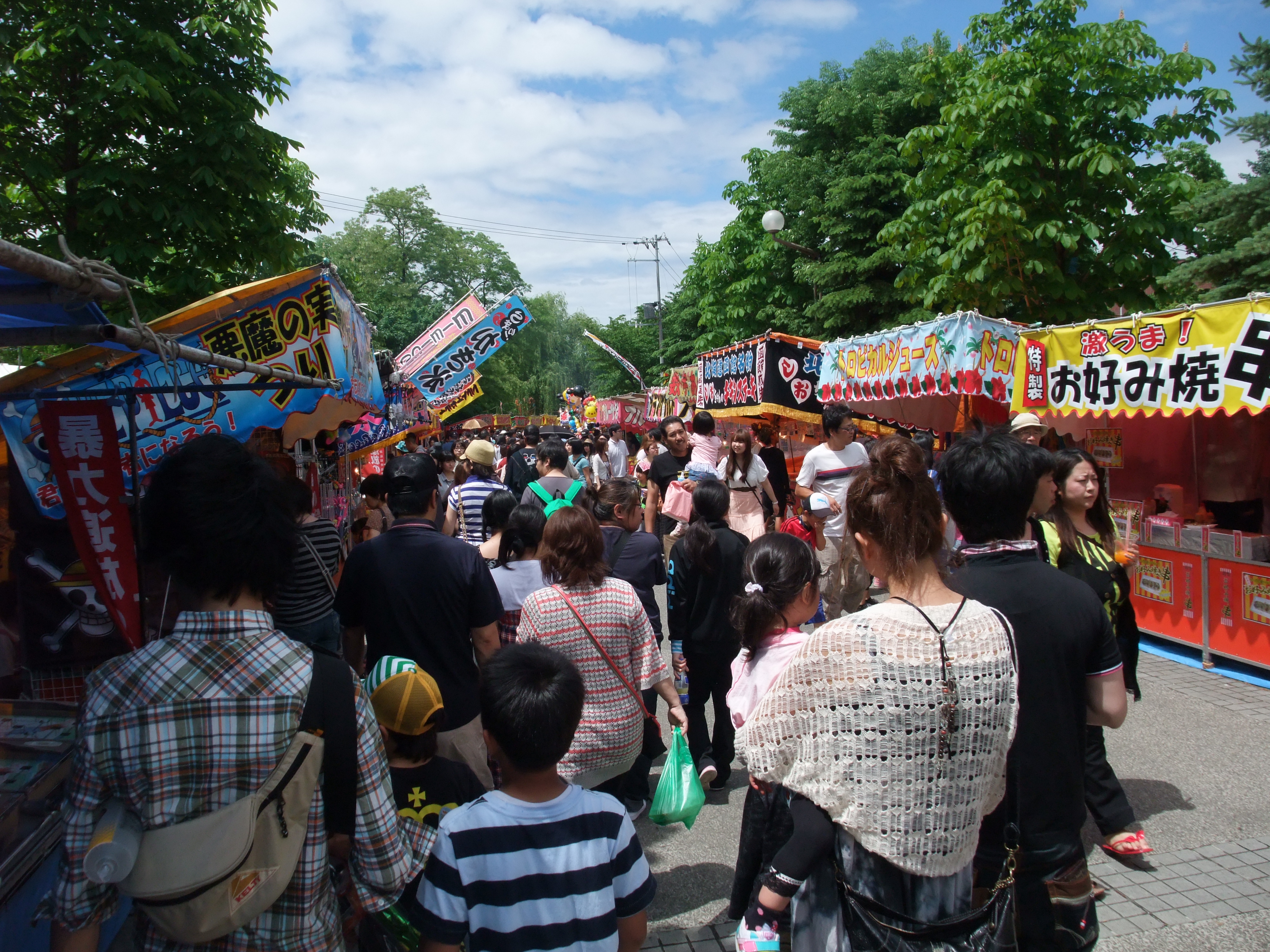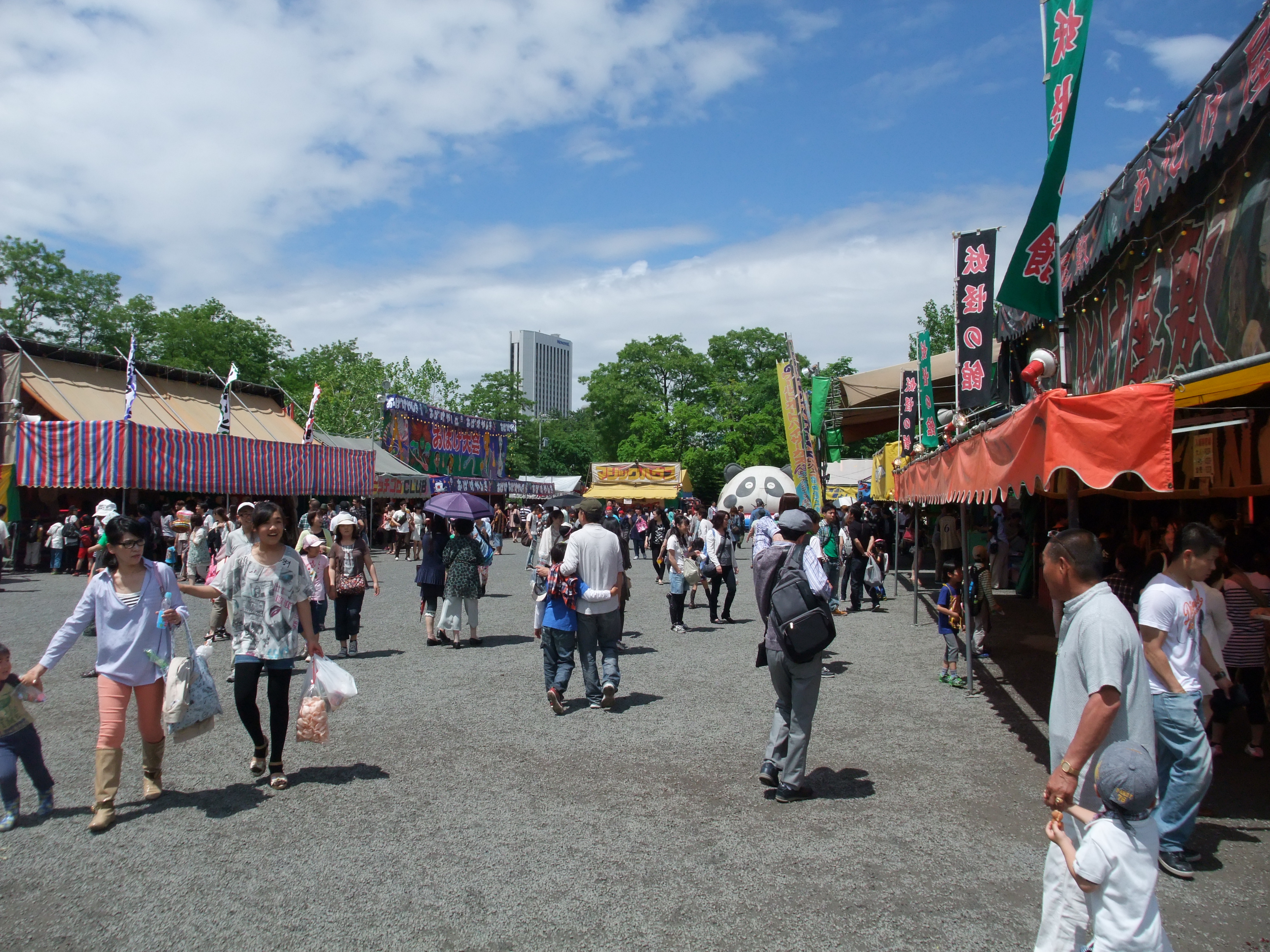 イベント情報 雨あがりましたね~ 2013年6月15日 nakajima 昼前には雨も上がり、青空になりましたね ♪♪ 今はちょっと曇り空ですが、まつりは人出も増え 盛り上がっていますよ!! 天気回復!どっと混んできました!! 昼時なので目当ての店前は混み合っていましたよ。 オートバイサーカスやお化け屋敷などの広場も混雑しています。