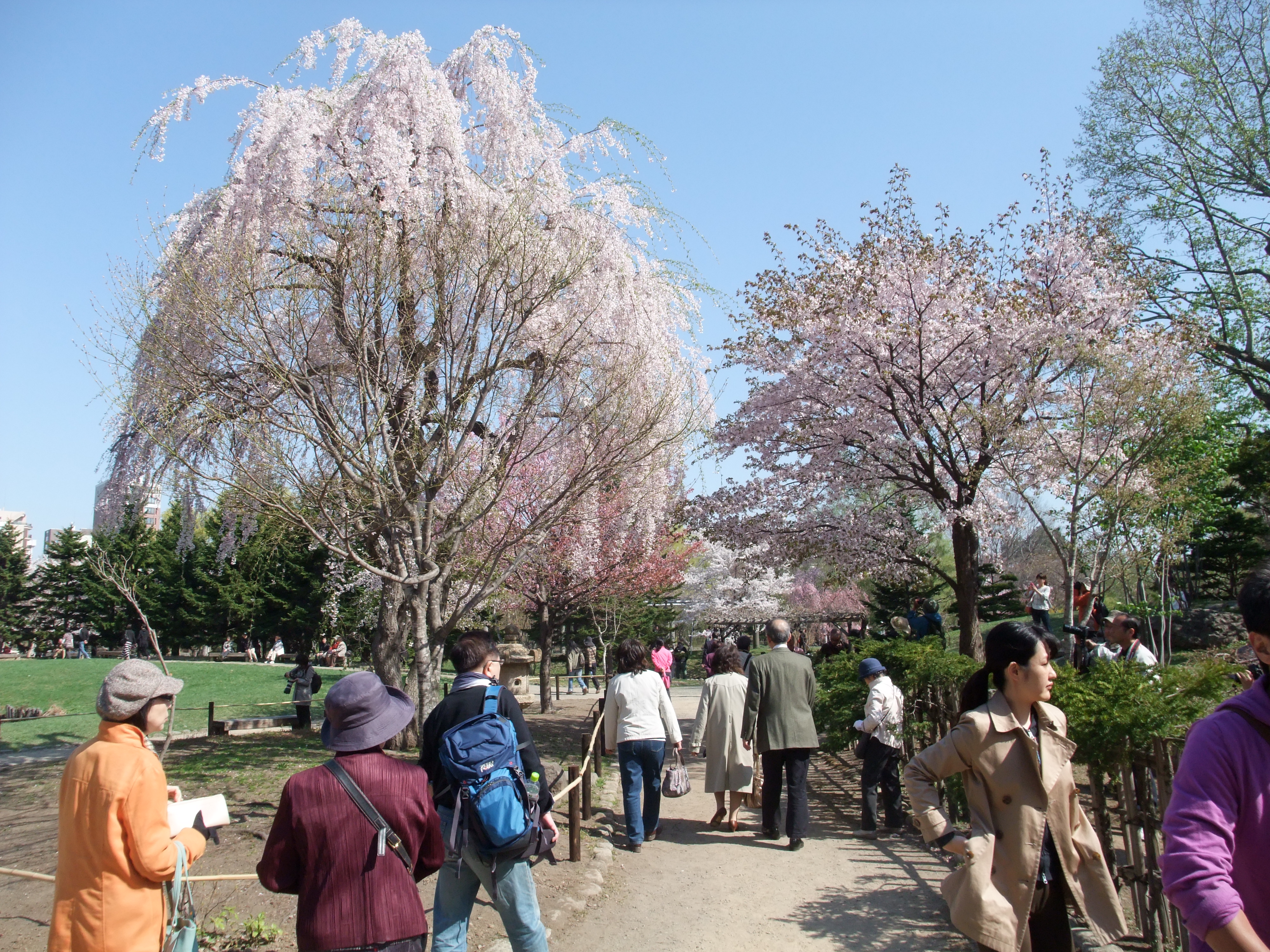 朝早くから中島公園内は花見、園芸市、キタラ鑑賞会へ向かう人の波で