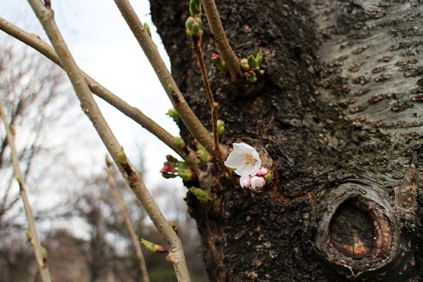 全体を見るとまだまだ蕾ですが、その中から咲いたサクラを探すのも楽しいですね。