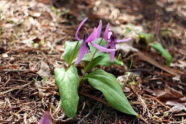 北門をくぐると、フクジュソウ・カタクリ・エゾエンゴサクが群生しています。