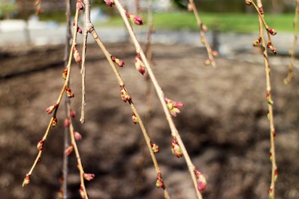 他のサクラの樹は、日当たりの良い部分から順に開花しそうになっています。