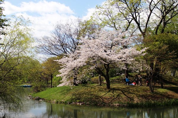 園内にポツポツと、まだきれいに咲いているソメイヨシノがあります。