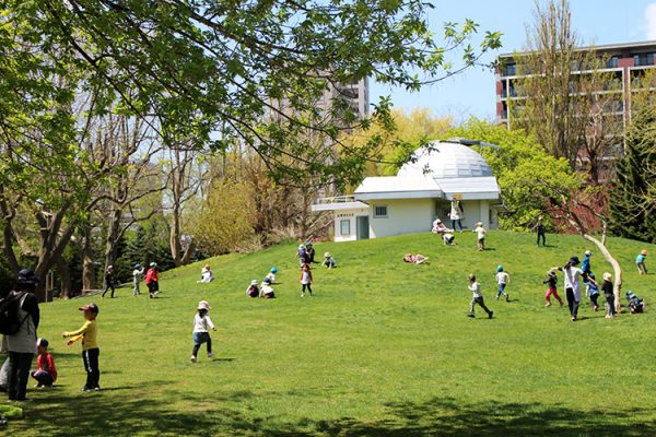 今日は良いお天気で、芝生の広場では子ども達が楽しそうに遊んでいました♪