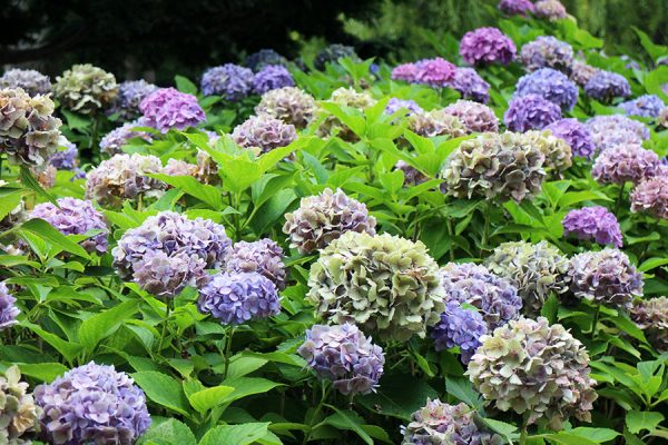 今時期は、ちょうど綺麗に色が出ているアジサイと、ドライフラワーになりかけてシックな色になっているアジサイの両方をご覧になることが出来ます。