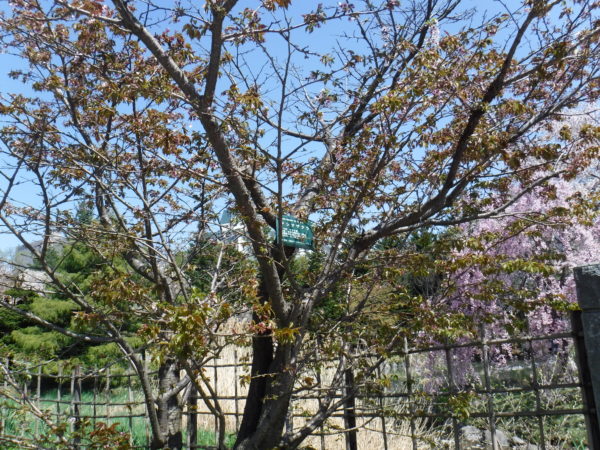 満開のピークを過ぎ葉が目立つようになってきました。花びらがヒラヒラと散り始め、時折吹く風に桜吹雪の美しい光景が見られます。