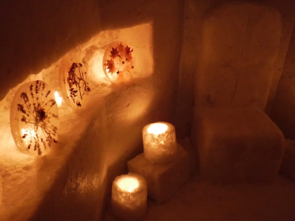 かまくら中には植物の氷パネルが展示されており、ほのかにアロマの香りが‼この中に立ち込めたあま~い香りをお届け出来ないのがとても残念です。ご来場の際は、ぜひ中に入って体験してみてくださいね。