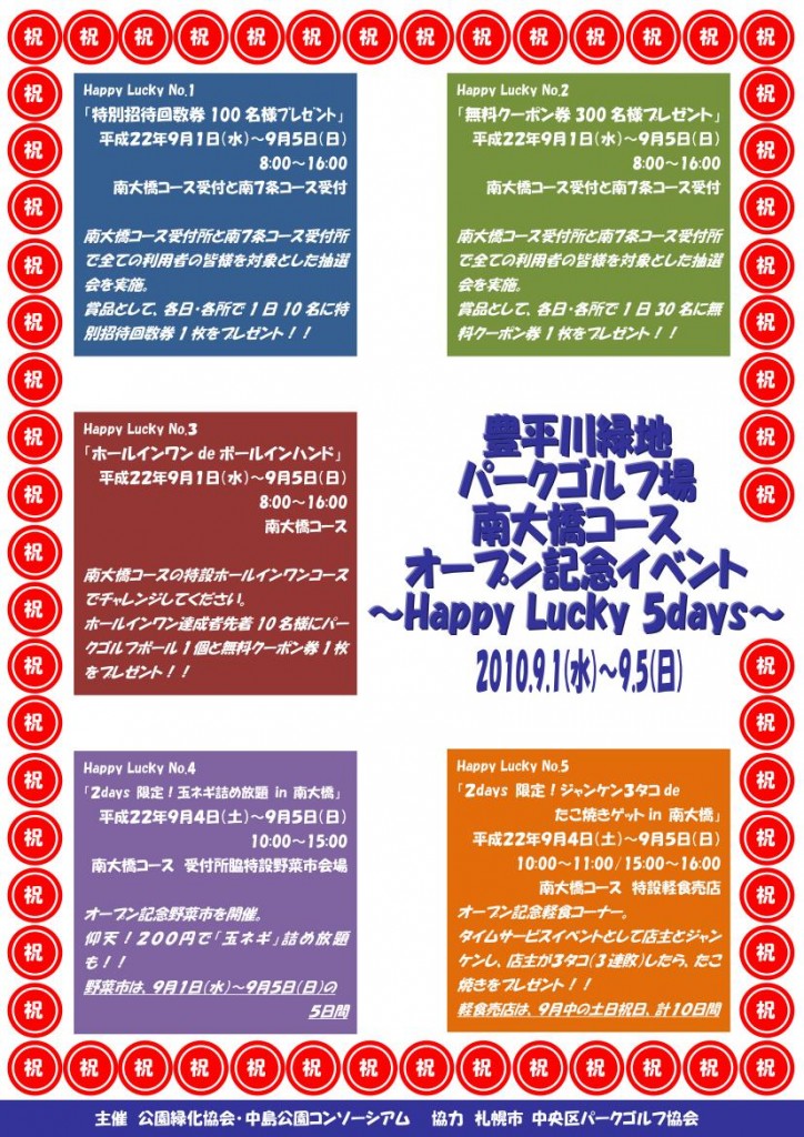 また、この「南大橋コース」のオープンを記念して、~Happy Lucky 5 days~と題したオープン記念イベントを開催いたします。
