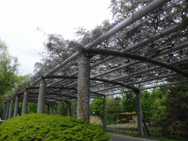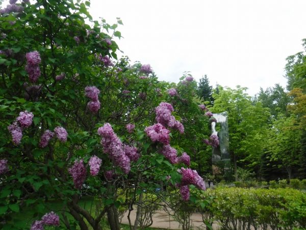 山内壮夫彫刻群が見られる百花園跡地の北側では、ライラックが園路沿いに植えられています。